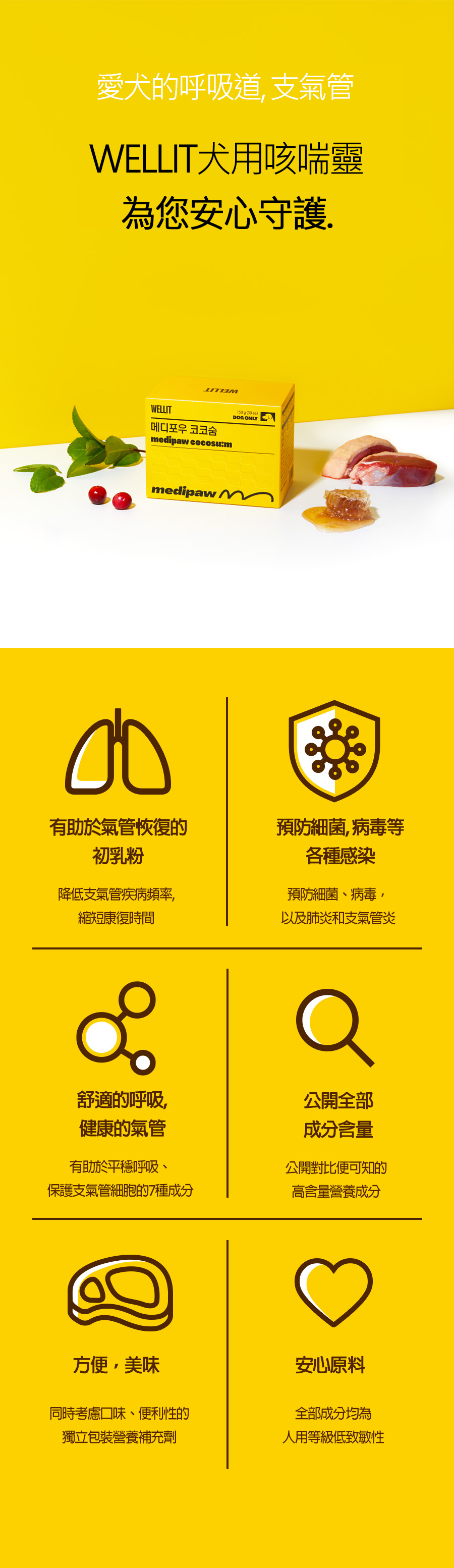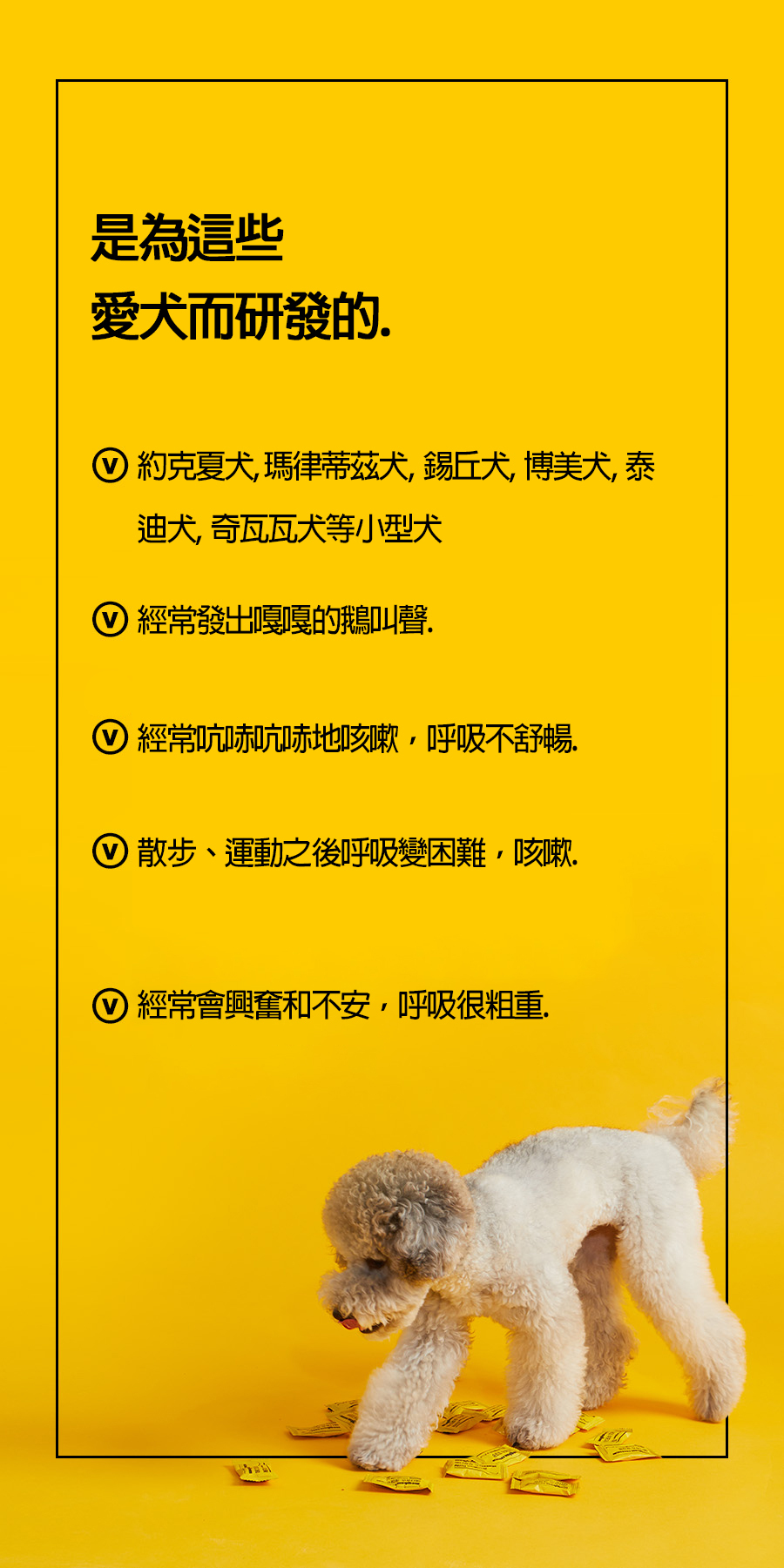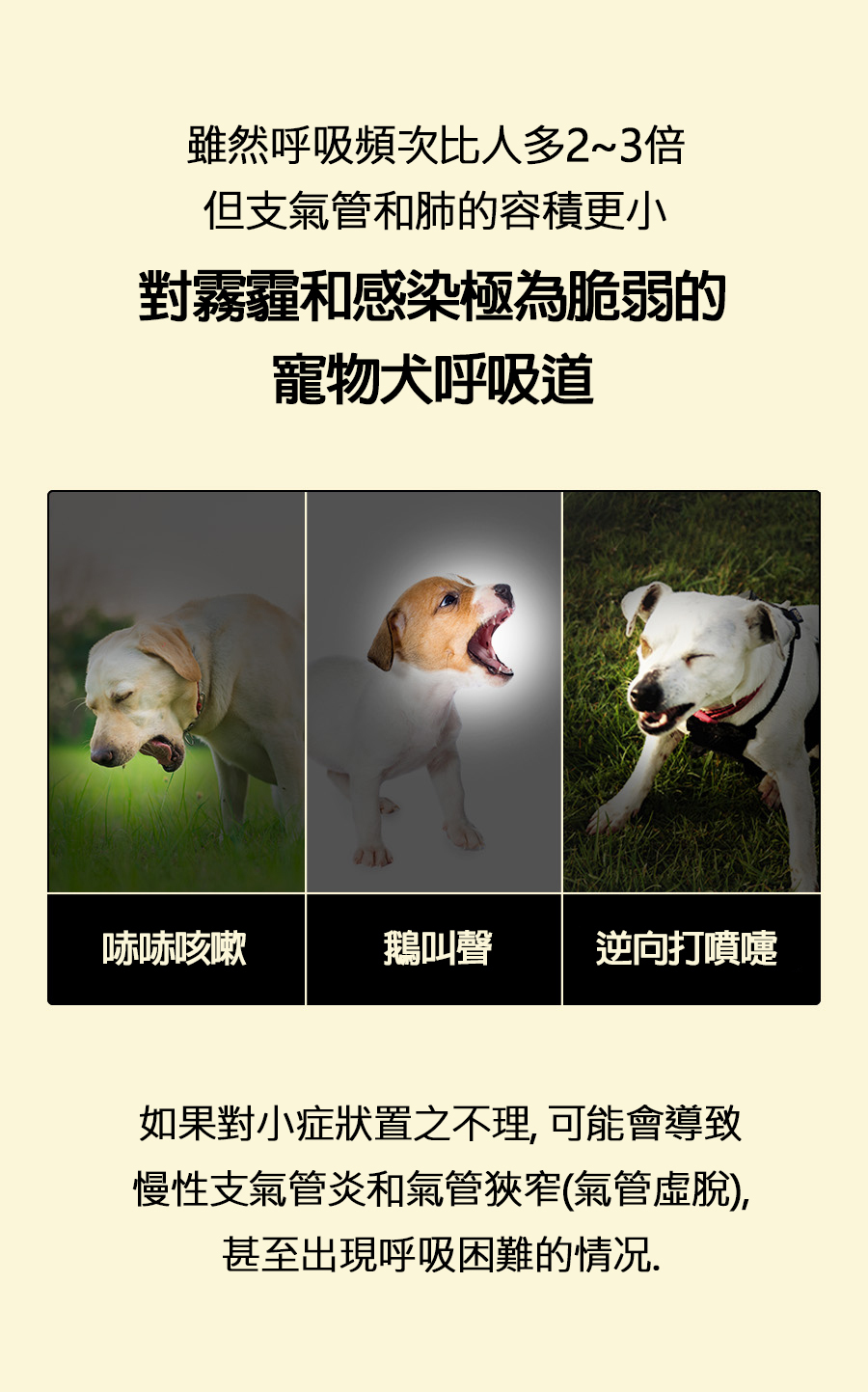 ✅為易受懸浮粒子及感染影響的寵物犬呼吸道提供呼吸及支氣管營養品