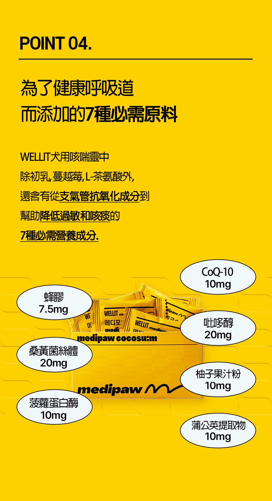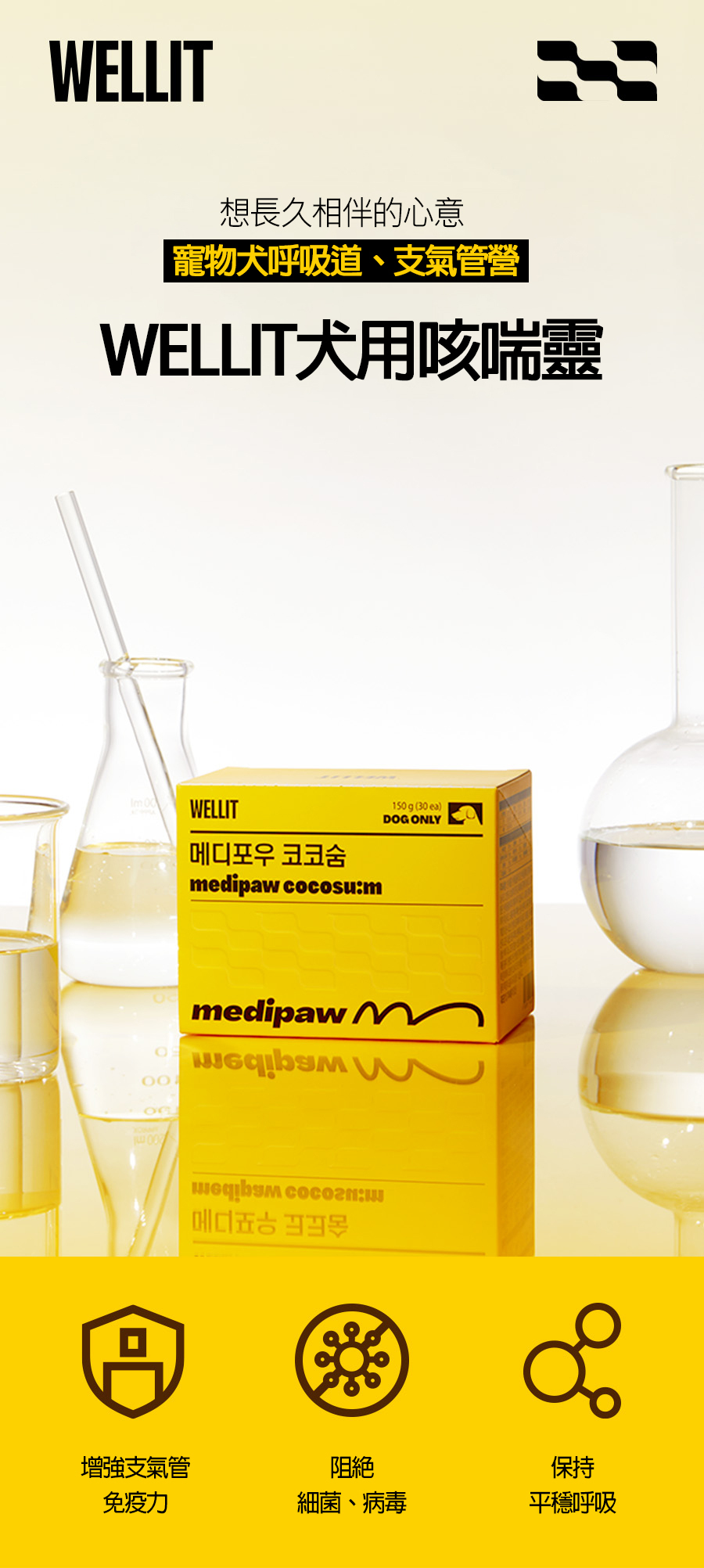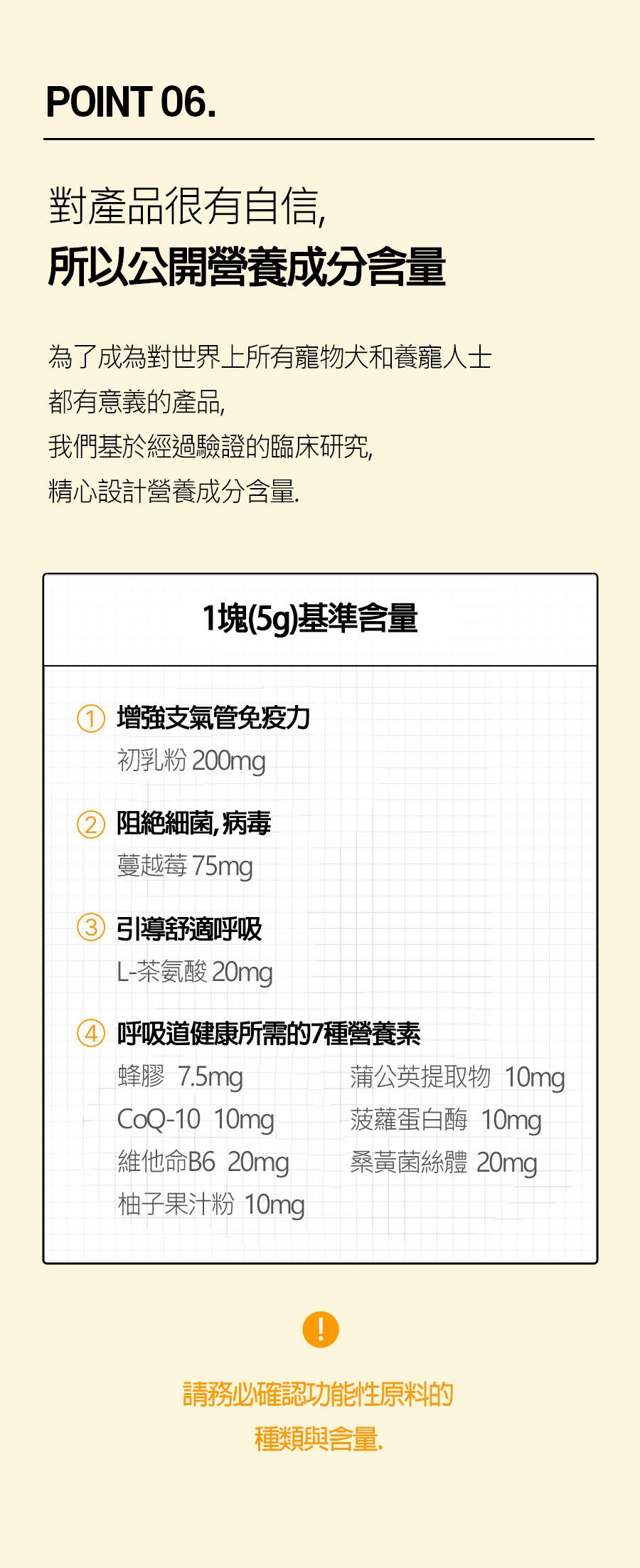 ✅為易受懸浮粒子及感染影響的寵物犬呼吸道提供呼吸及支氣管營養品
